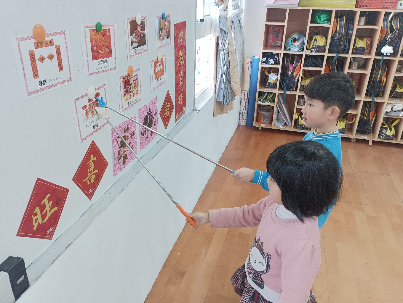 利用字卡認識過年的客語,小朋友能正確指出字卡內容