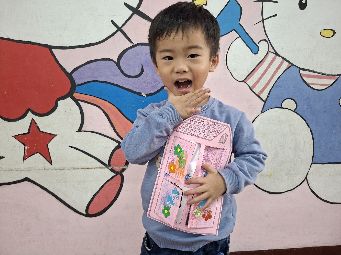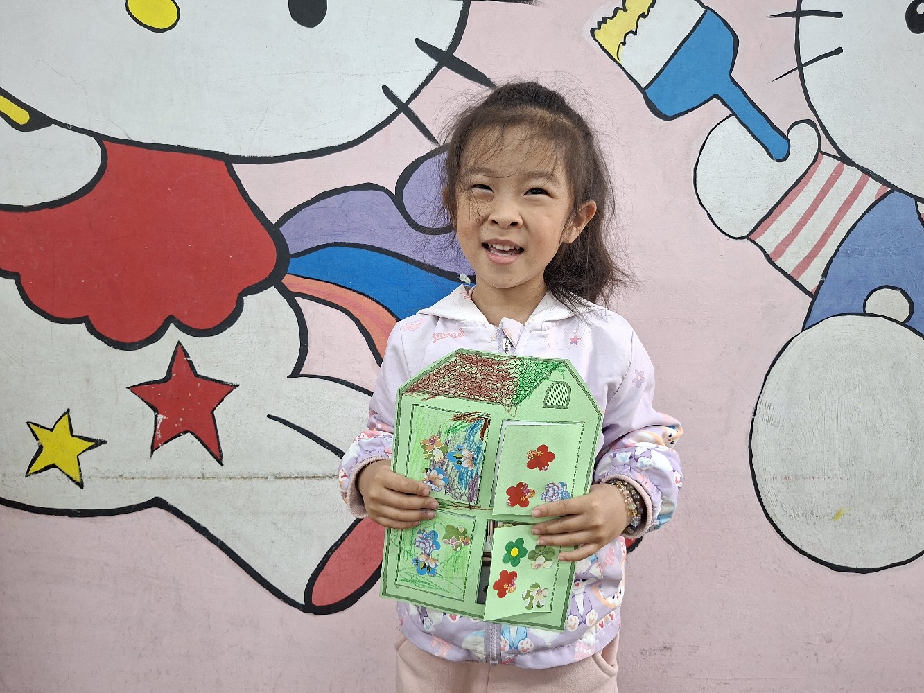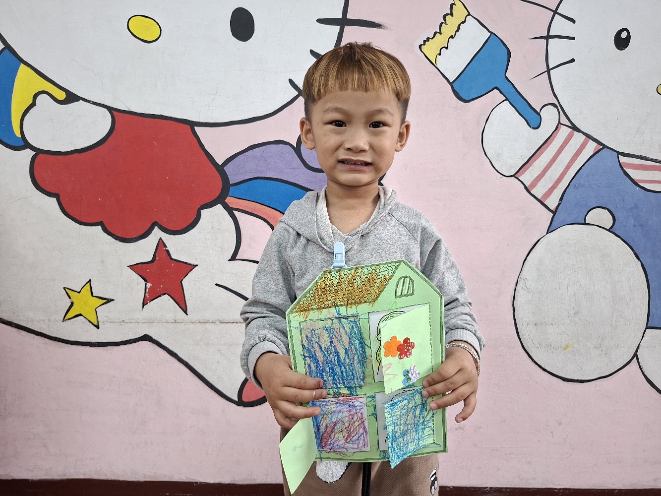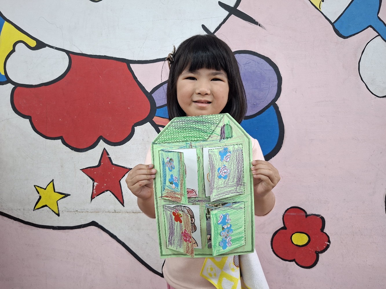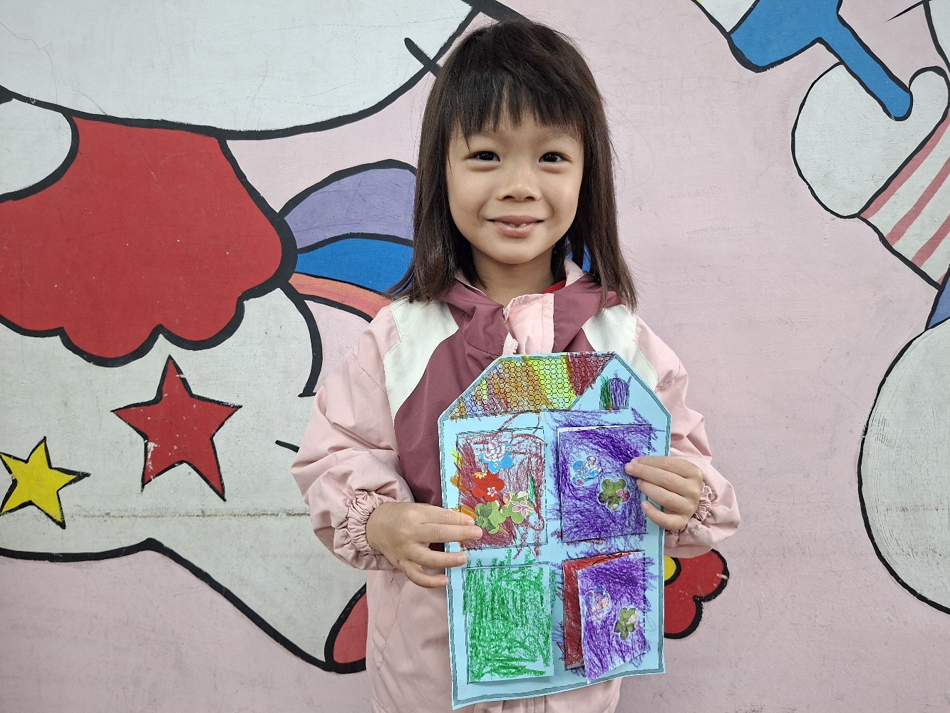 認識家人稱謂間的關係,小朋友運用蠟筆進行彩繪,完成溫暖的家