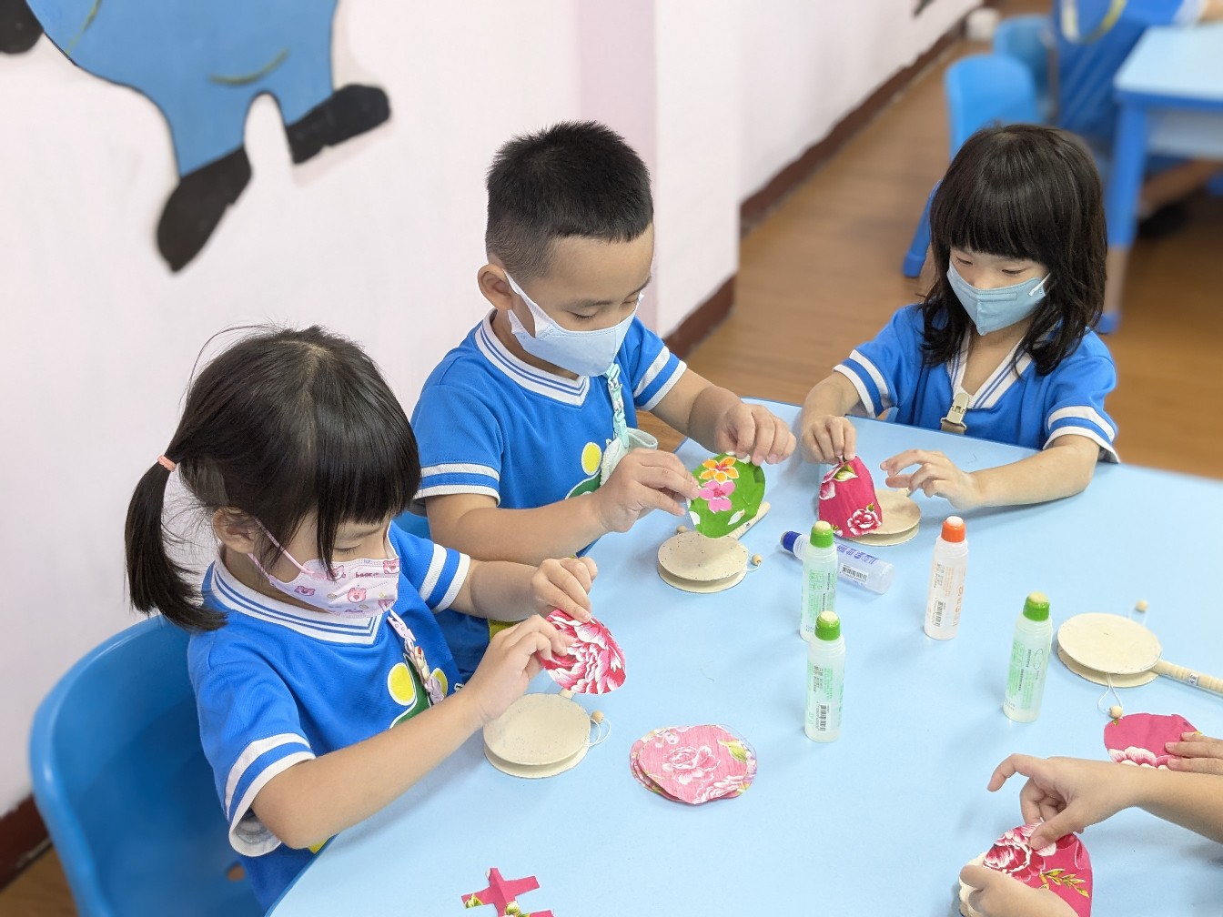 運用客家花布,加上波浪鼓;結合雙十,變成創意波浪鼓。❤️