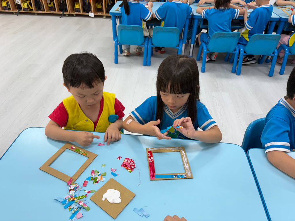 今天我們做了「客語風格相框」,小朋友用漂亮的客家花布元素來裝飾,每個人都做出超有特色的作品,也一起認識了客家文化呢!