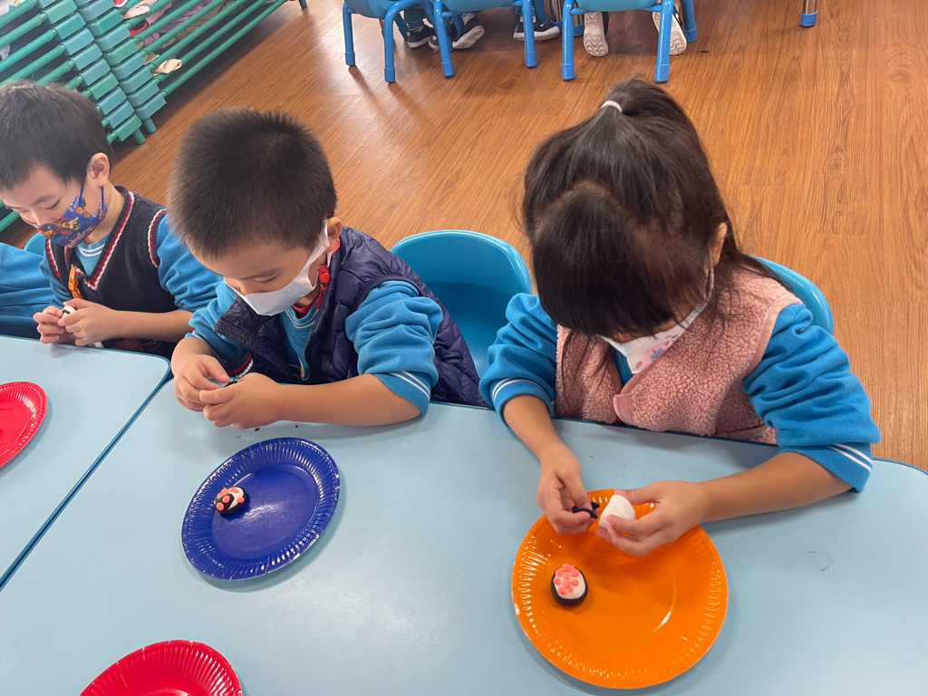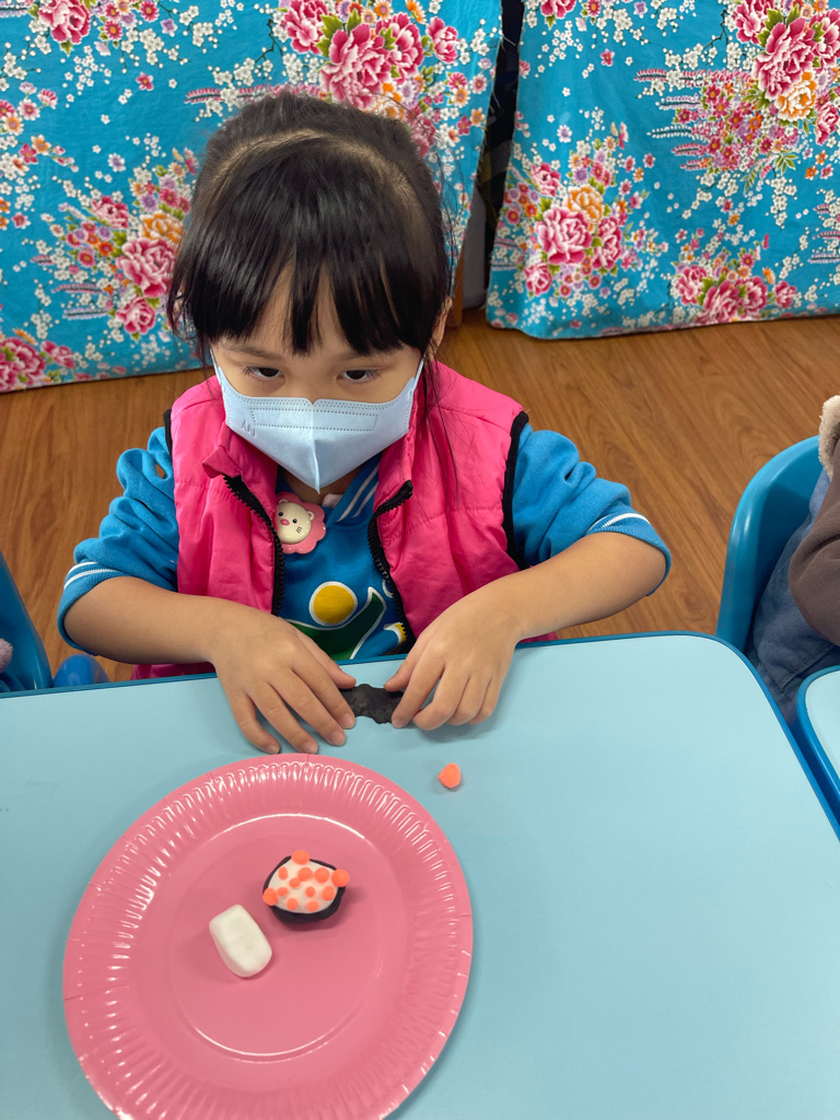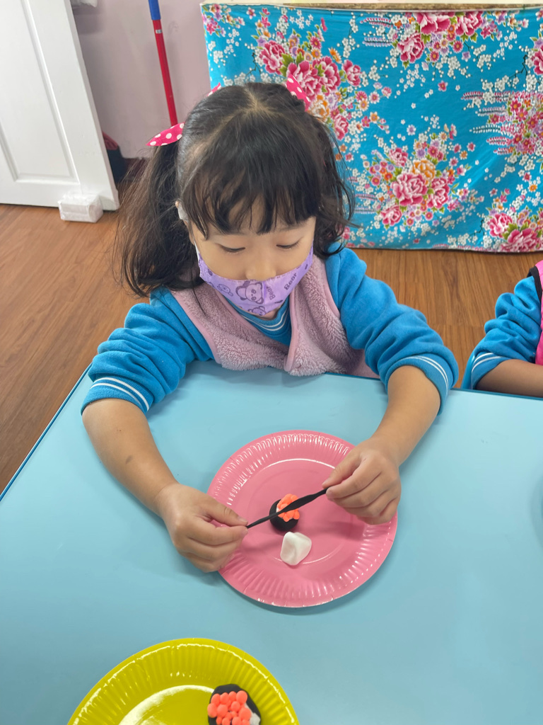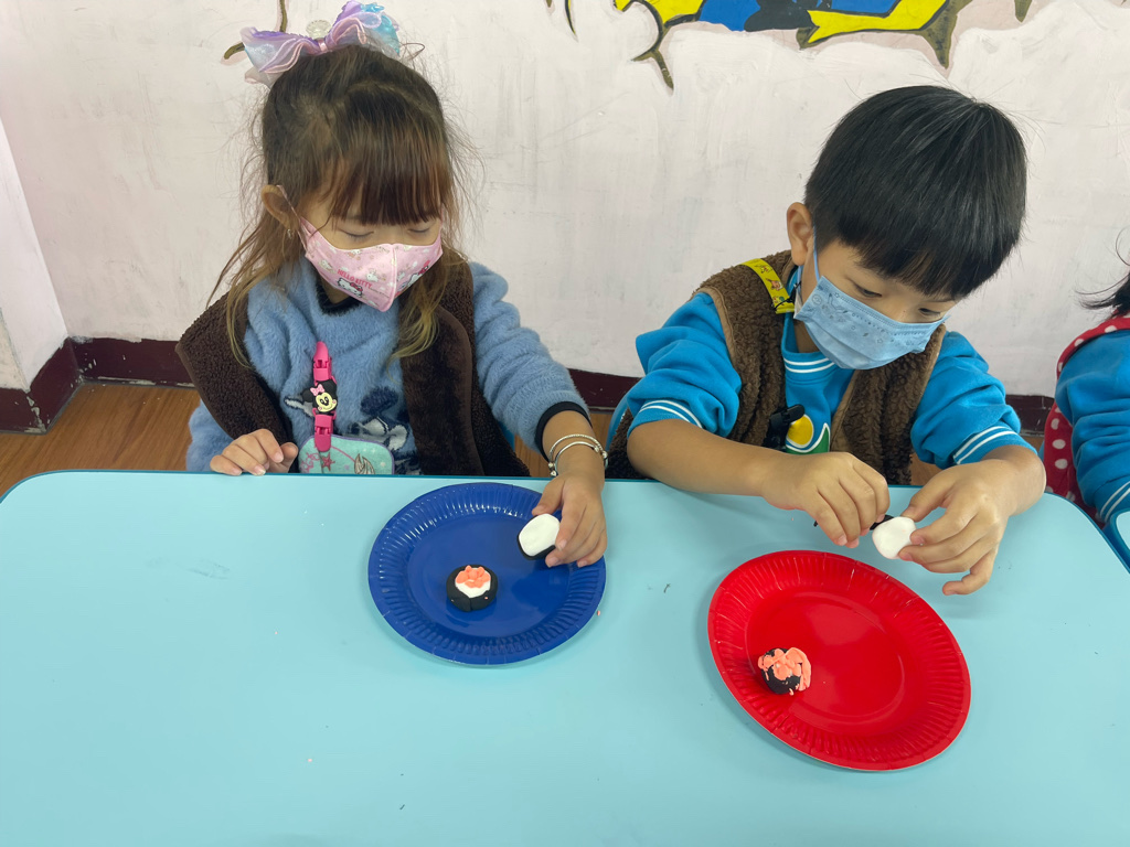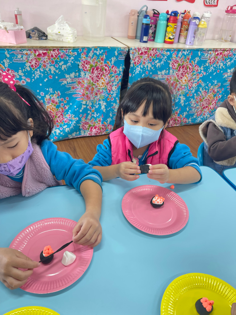 運用客家花布和黏土,製作出特色又美味😋的花壽司。❤️❤️