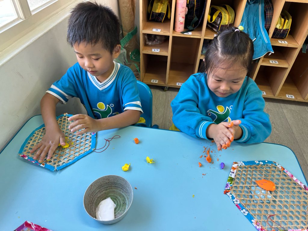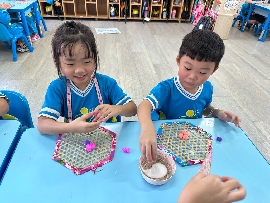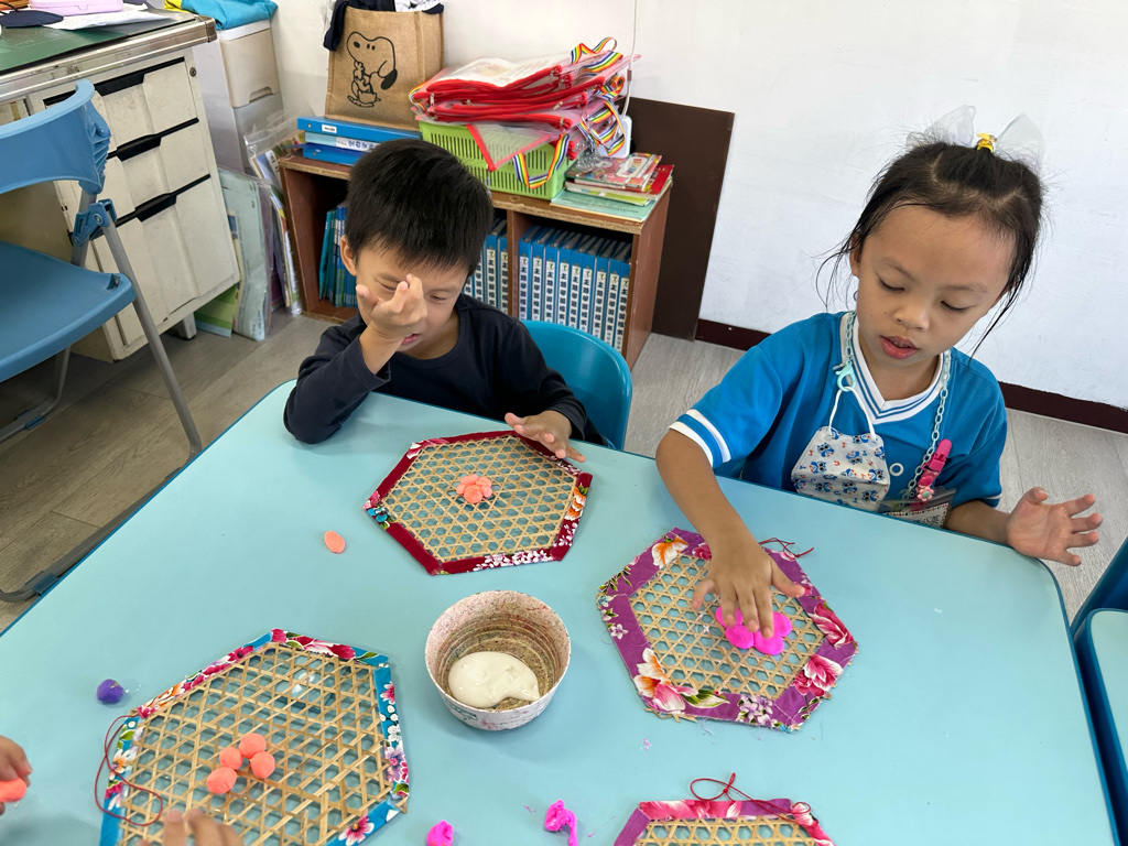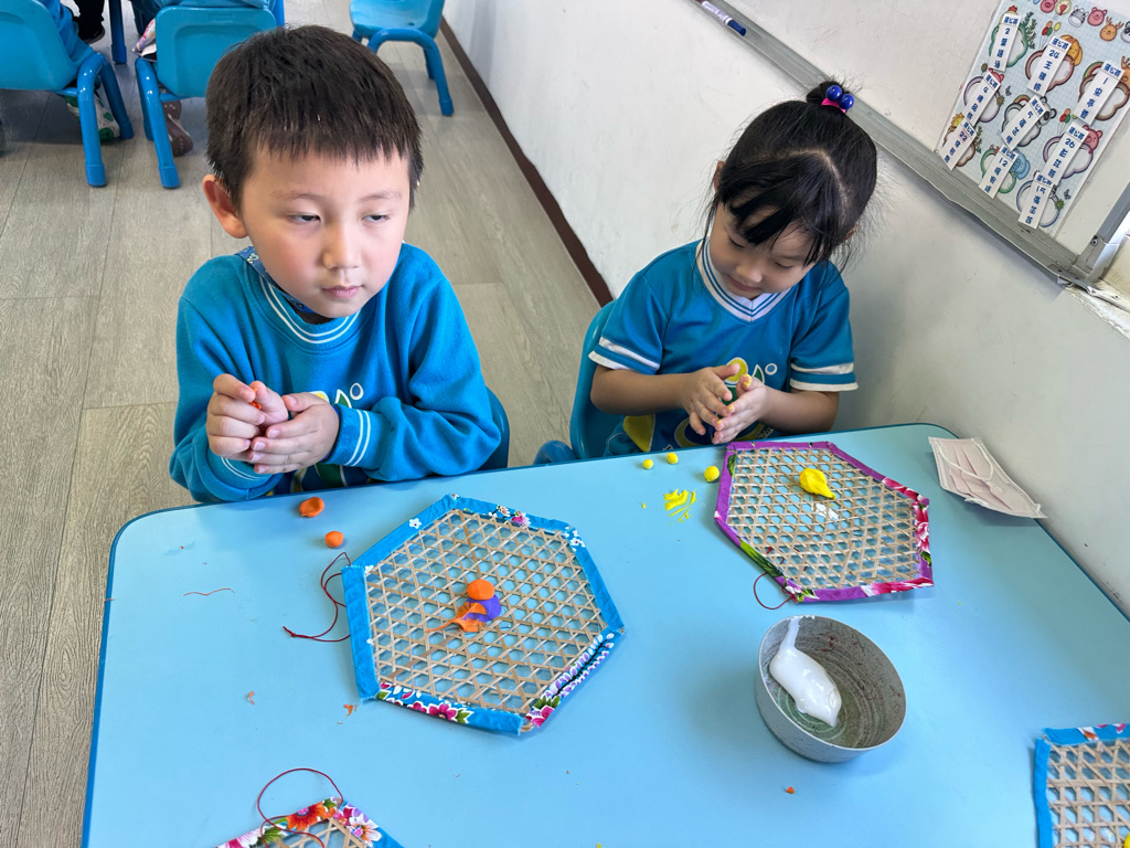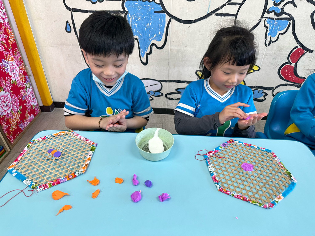 小朋友利用不同的素材進行創作,小朋友藉由捏、搓達到小肌肉的運動,認真思考創作!