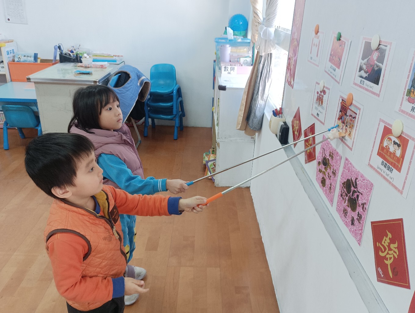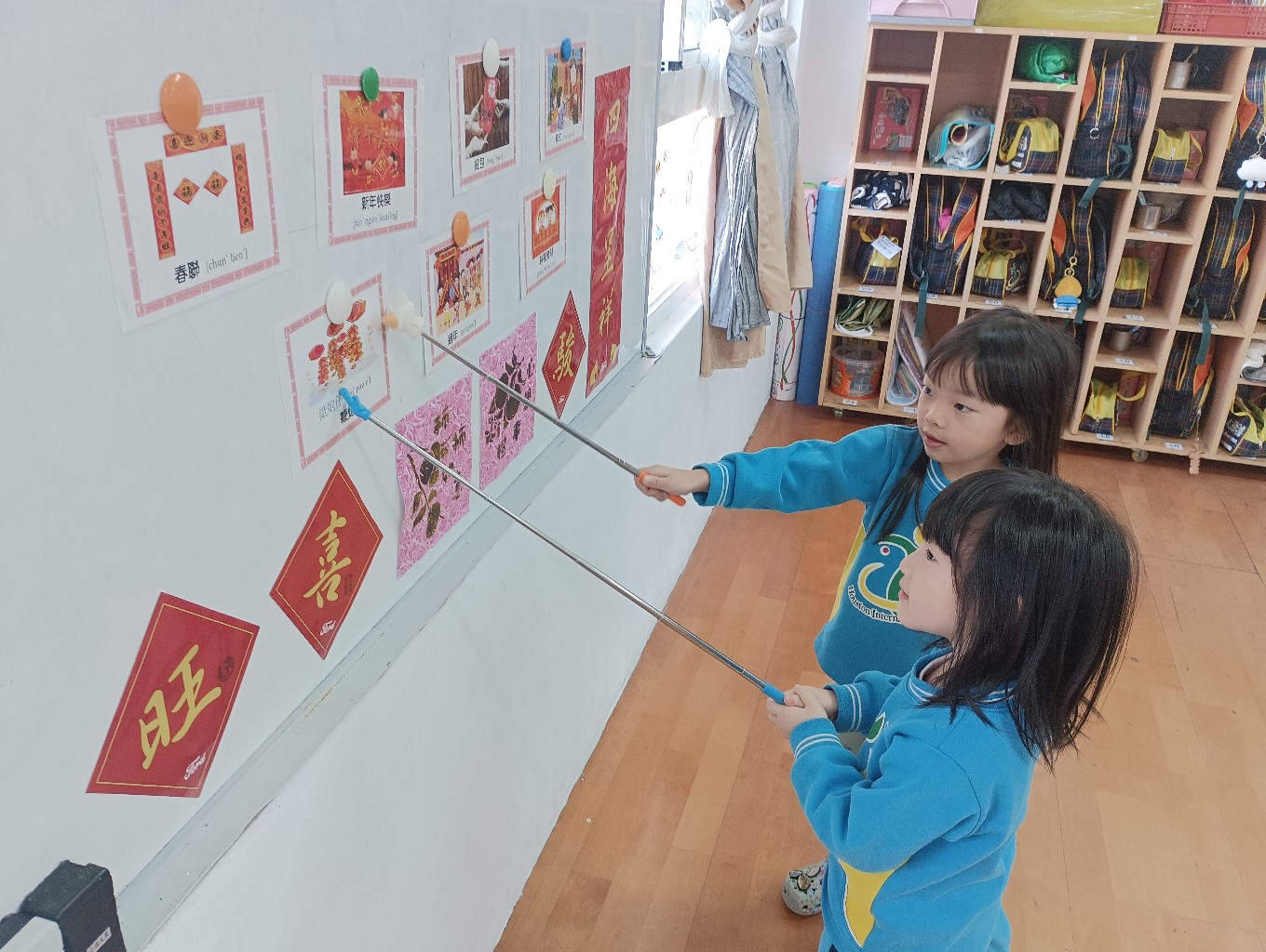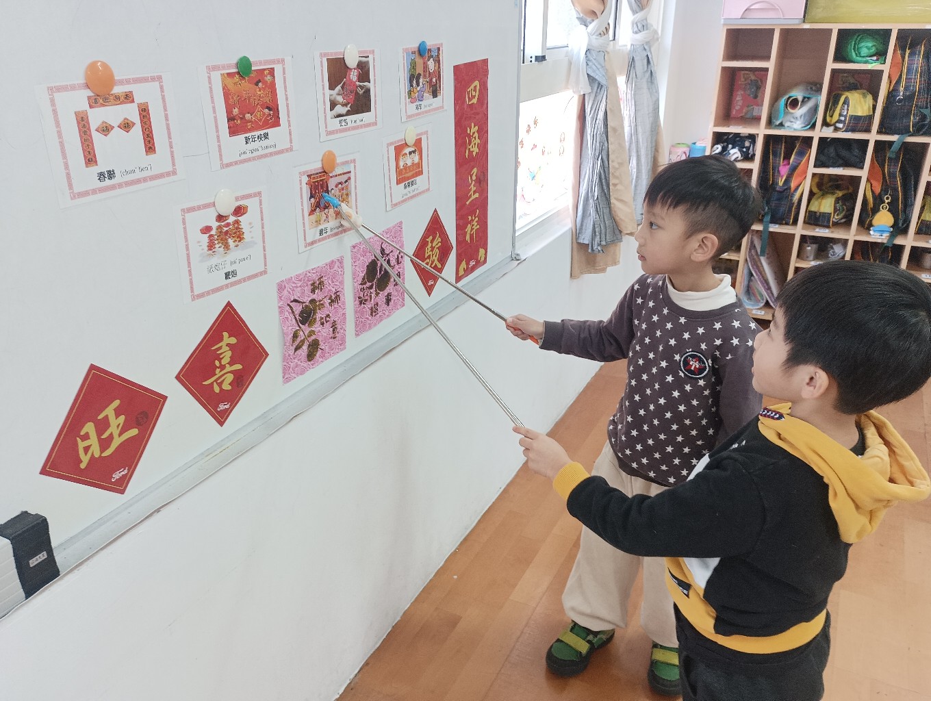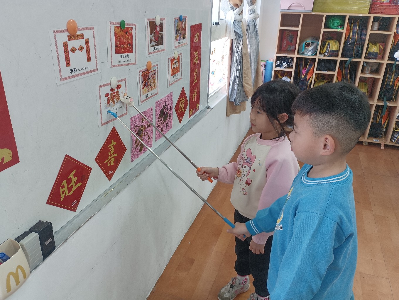 利用字卡認識過年的客語,小朋友能正確指出字卡內容