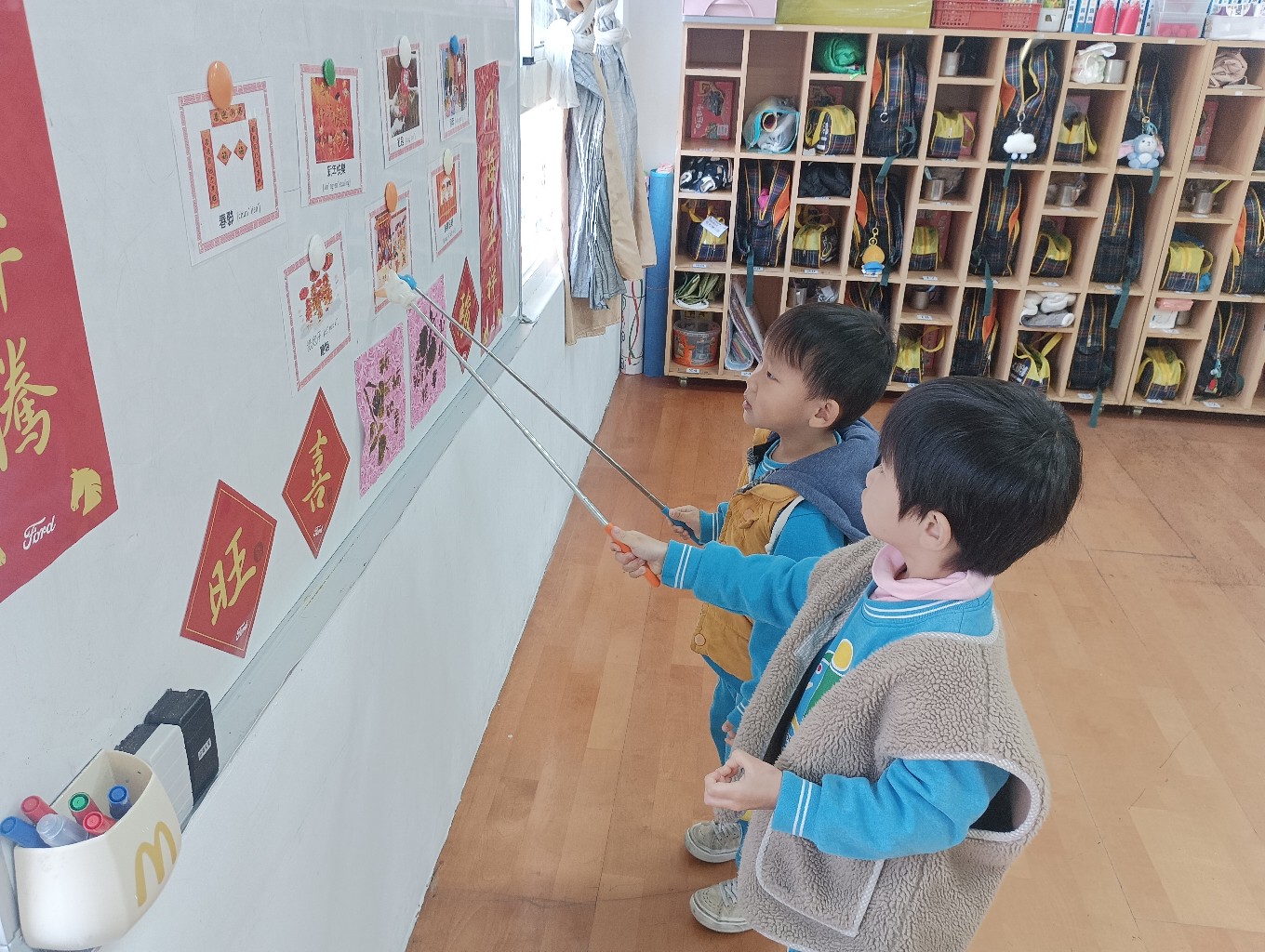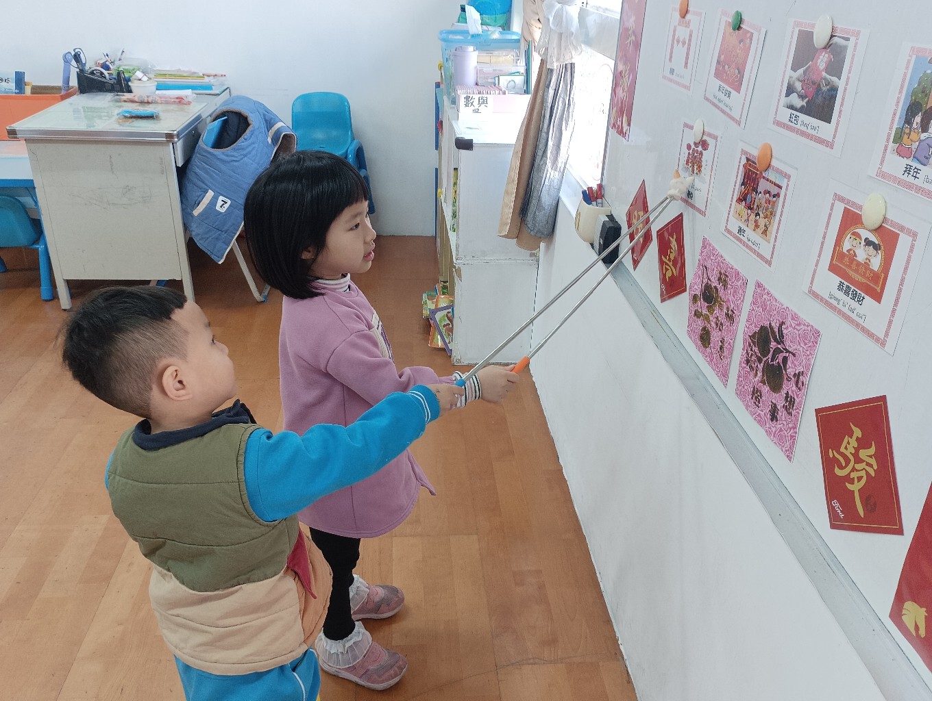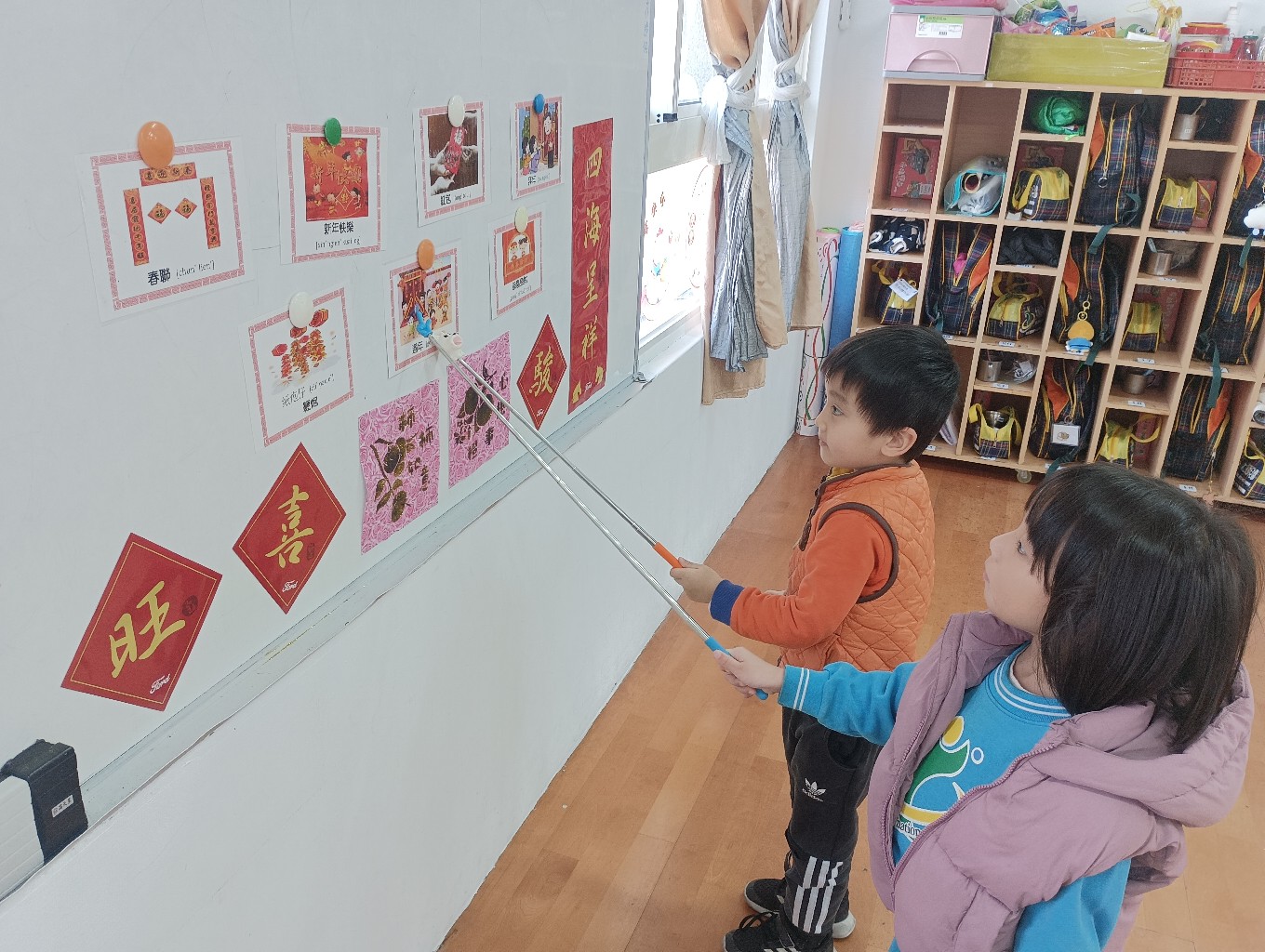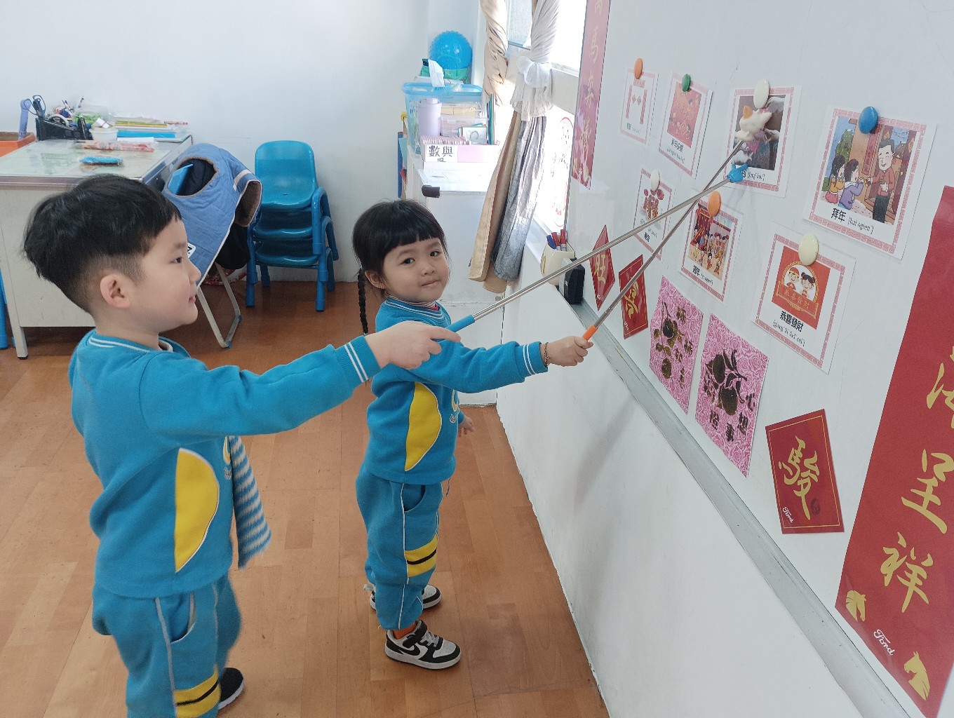 利用字卡認識過年的客語,小朋友能正確指出字卡內容